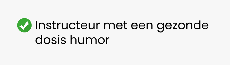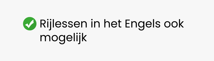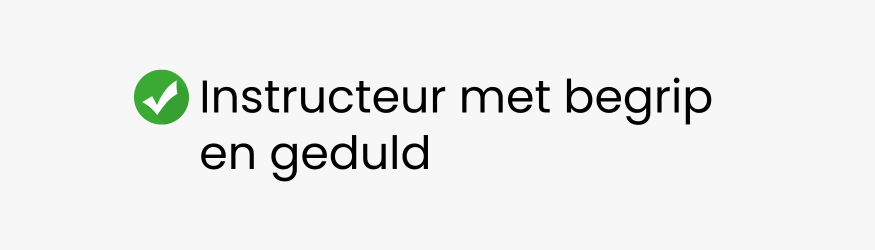 Wij geven les op maat, volledig afgestemd op jouw niveau, tempo en leerstijl. Iedereen is anders, en daarom geloven wij in een persoonlijke aanpak. Geen standaardlessen of massale benadering, maar échte begeleiding die bij jou past. Onze instructeurs zitten ook niet op hun mobiel tijdens de lessen, dit om de leerling volledige aandacht te geven.